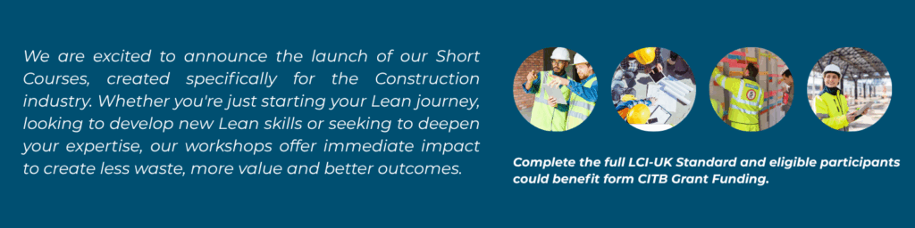 LCI-UK offers courses in key Lean Skills, such as Visual Management, Collaborative Planning and Value Stream Mapping. Available as standalone workshops, it is also possible to claim CITB grant upon completion of a part two workshop and the associated work-based activity.